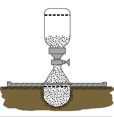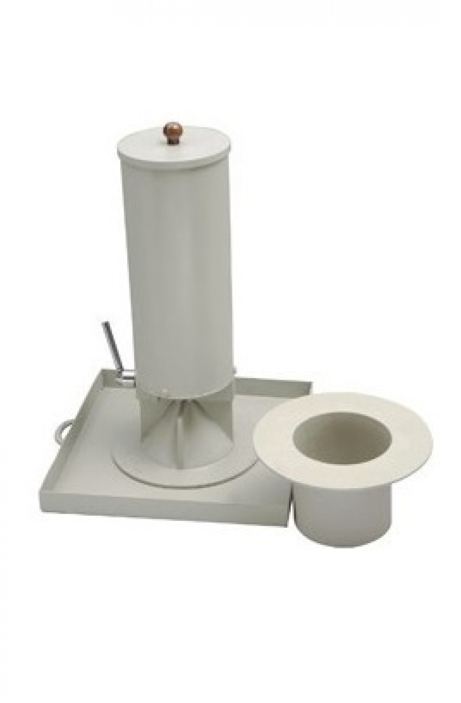 پس از حفر یک گود ال در زمین محل پروژه، سندباتل را روی سینی قرار می دهیم به گونه ای دیگر تکان نخورد. سپس شیر دستگاه را باز می کنیم تا چاله پر از ماسه شود. هنگامی از پر شدن چاله اطمینان پیدا می کنیم که سطح ماسه بدون حرکت باقی بماند. پس از آن پیچ دستگاه مخروط ماسه را می بندیم و آن را از روی سینی بر می داریم.