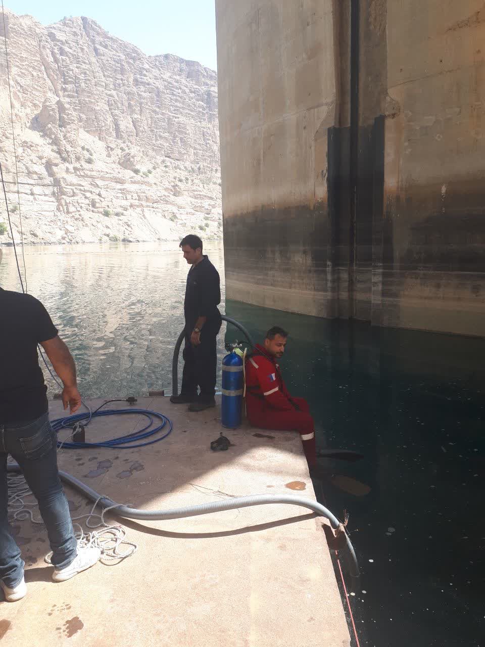 شروع عملیات تمیزکاری و پاکسازی نشیمنگاه (کف) استابلاگ دریچه های (5 دریچه) سر ریز سد و نیروگاه مسجدسلیمان